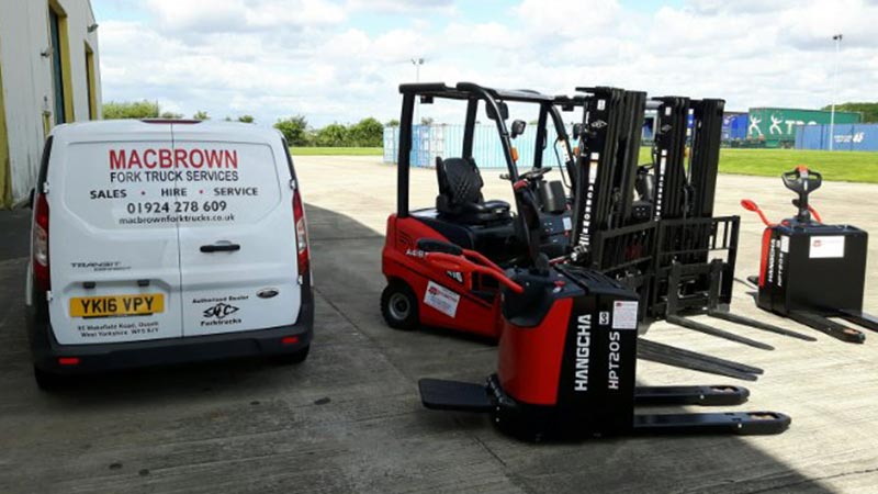 HC Forklifts Dealer, Macbrown of Ossett, West Yorkshire deliver 2 more of the ever popular and reliable A-Series Electric 4 Wheel CB along with 3 of the Hi-Range Pedestrian Pallet Trucks all of which will compliment an existing fleet of HC Warehouse Equipment at their customers facility.