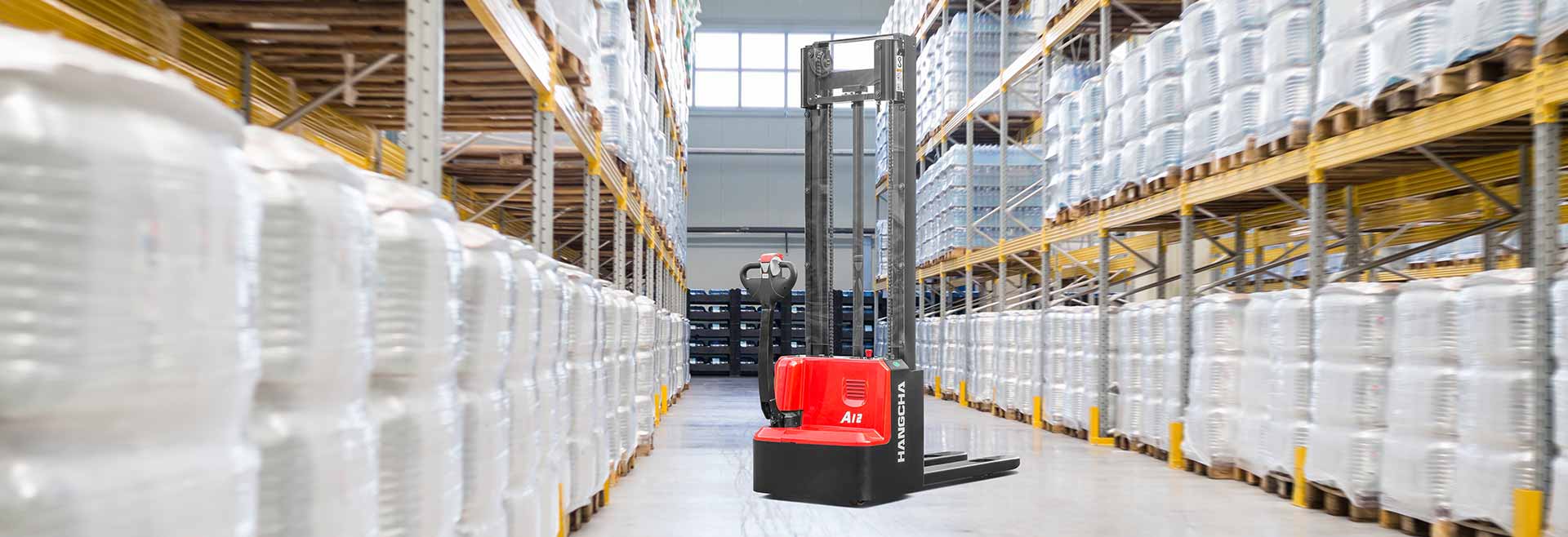 The A series mini range pallet stacker with initial lift is a new product developed by Hangcha for warehousing and logistics applications. It has a compact body, and can be operated easily and is suitable for operation in narrow aisles. It can carry out double pallet handling through leg lifting and is ideal for loading in warehouses, supermarkets, and workshops.