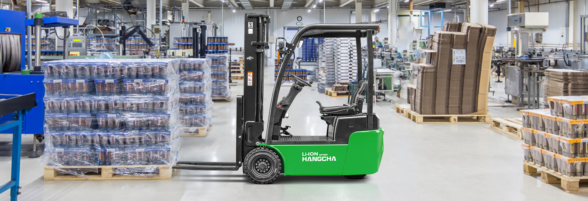 Hangcha’s X series 1.3-1.5t three-point electric forklifts are a new series of high-efficiency, energy-saving electric counterweight forklifts with a new structure that represents a breakthrough over the traditional design concept. With a compact structure, small turning radius and light weight and high maneuverability, the vehicle is widely used in narrow operation places, e.g., warehouses, supermarkets, workshops, etc.