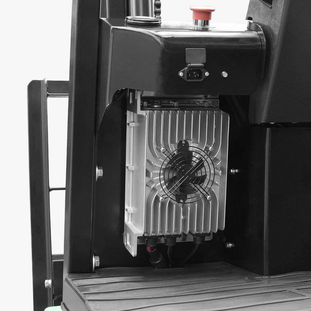 AC devices, precise speed control, maintenance-free motor, temperature monitoring. The forklift is equipped with an AC controller to enable its driving, steering, lifting, tilting and other actions to be controlled by a computer.